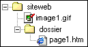 Lorsque l'image que vous insérez se trouve dans un sous dossier par rapport au dossier dans lequel le .htm qui fait appel à l'image, il faudra alors l'indiquer. Prenons un exemple. Votre fichier .htm (appelons le page1.htm) est dans le dossier C:\Windows\Bureau\Siteweb\ et l'image (disons image1.gif) que vous voulez insérer est dans le dossier C:\Windows\Bureau\Siteweb\dossier\ . Pour mieux comprendre, regardez le schéma ci-contre.